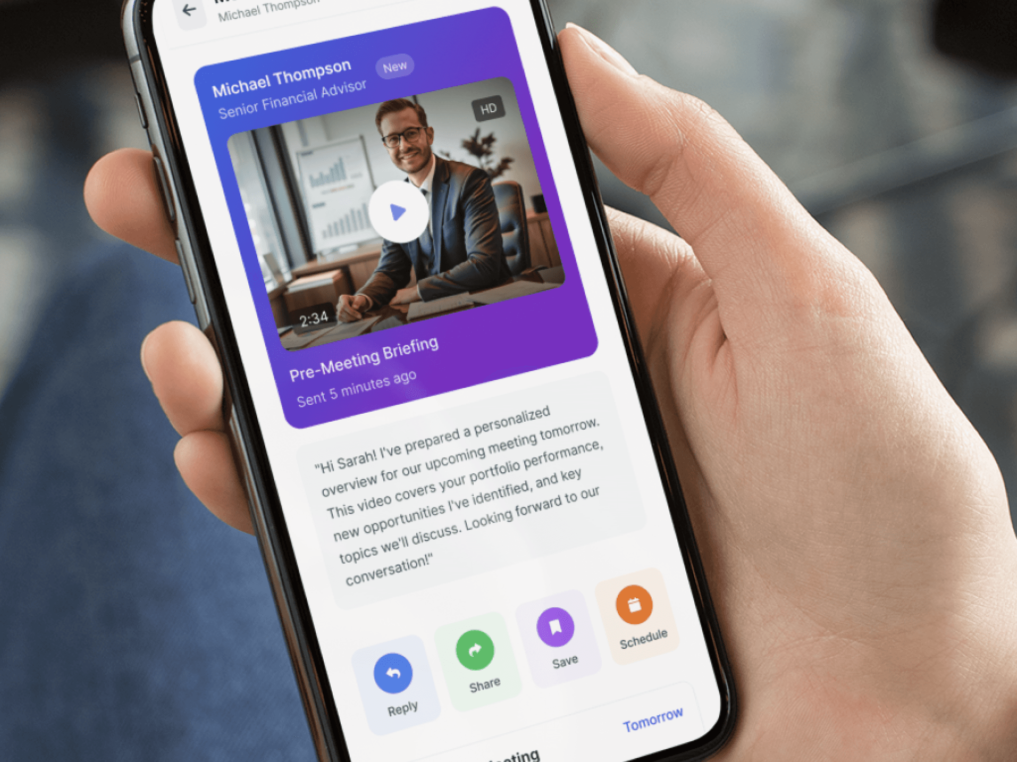 Before the meeting, the advisor sends a brief, personalized video to introduce themselves, set expectations, and build pre-meeting confidence.