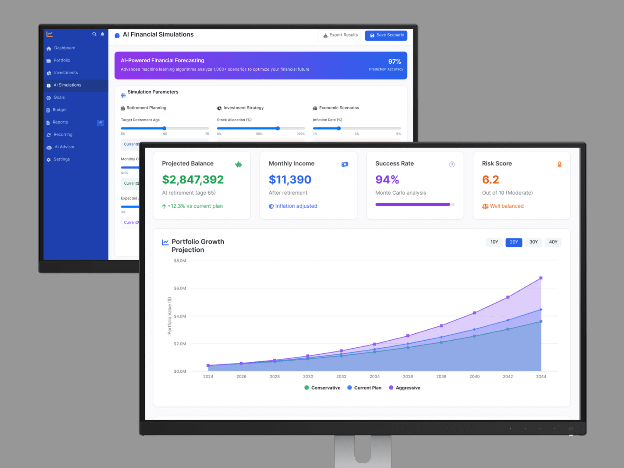 AI-enabled simulations—using simple sliders for contributions, retirement age, and risk—give the client and advisor a shared, real-time view to see how choices change the plan together.
